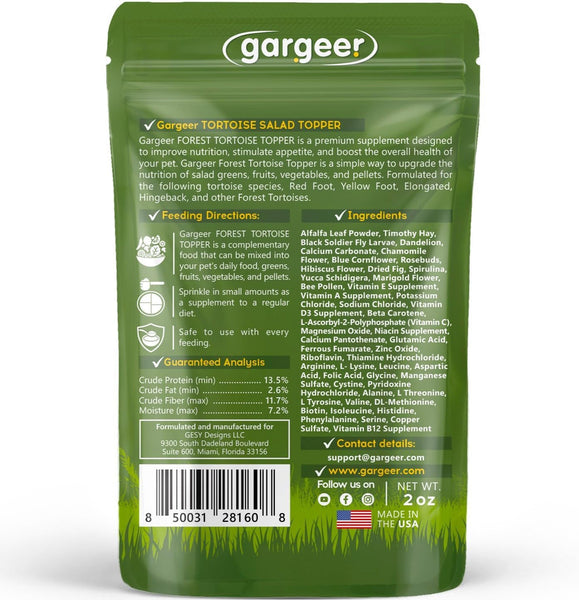 Gargeer Forest Tortoise Salad Topper: Supercharge Healthy Diet Supplement - Essential Nutrition Care Blend for Strength & Robust Immune System in Juveniles & Adults. 2oz