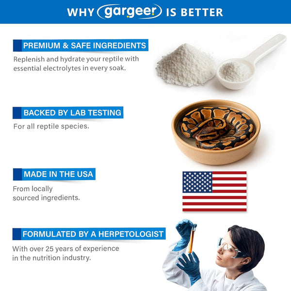 Gargeer Premium ReptiSoak Electrolytes SOAK for Reptiles | Hydration & Recovery Bath Powder for Bearded Dragons, Geckos, Lizards, Tortoises | Electrolyte Reptile Supplement | Made in USA. Enjoy!